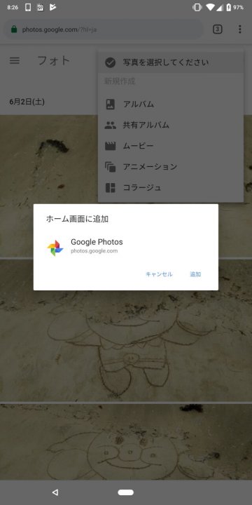 つまり今回、「Google フォト」アプリのように動作させることができるようになったということです。実際には、Windows の場合は「Chrome」のメニューから “その他のツール(L)” → “デスクトップに追加…” で PWA 化された「Google フォト」をホーム画面に追加することができ、Android の場合も「Chrome」ブラウザから同じような流れで追加することができます。
