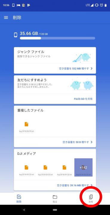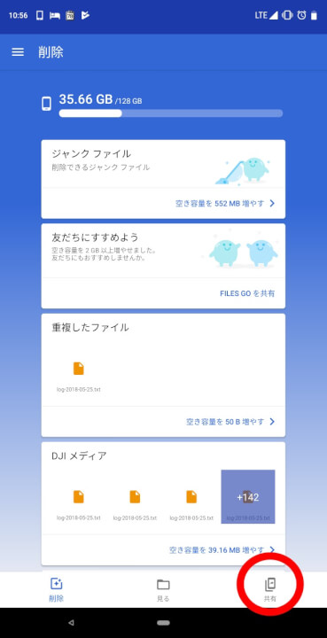 これで、「Files Go」を起動してすぐに “共有” を利用できるようになりましたね。結構便利なので、是非活用してみてましょう。