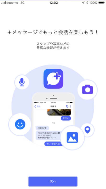 「+メッセージ」は、LINE 対抗のメッセージサービスです。