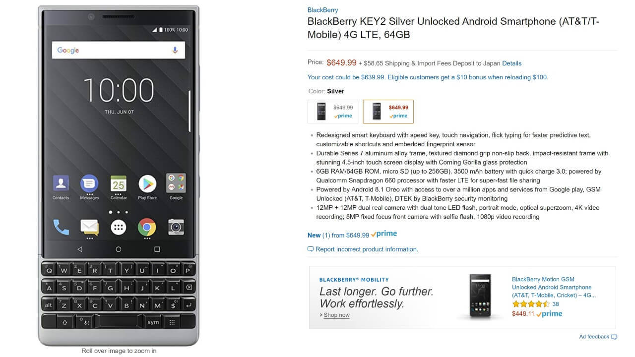 更に Amazon は、「KEY2」の日本直送もサポートしています。つまり直輸入可能です。