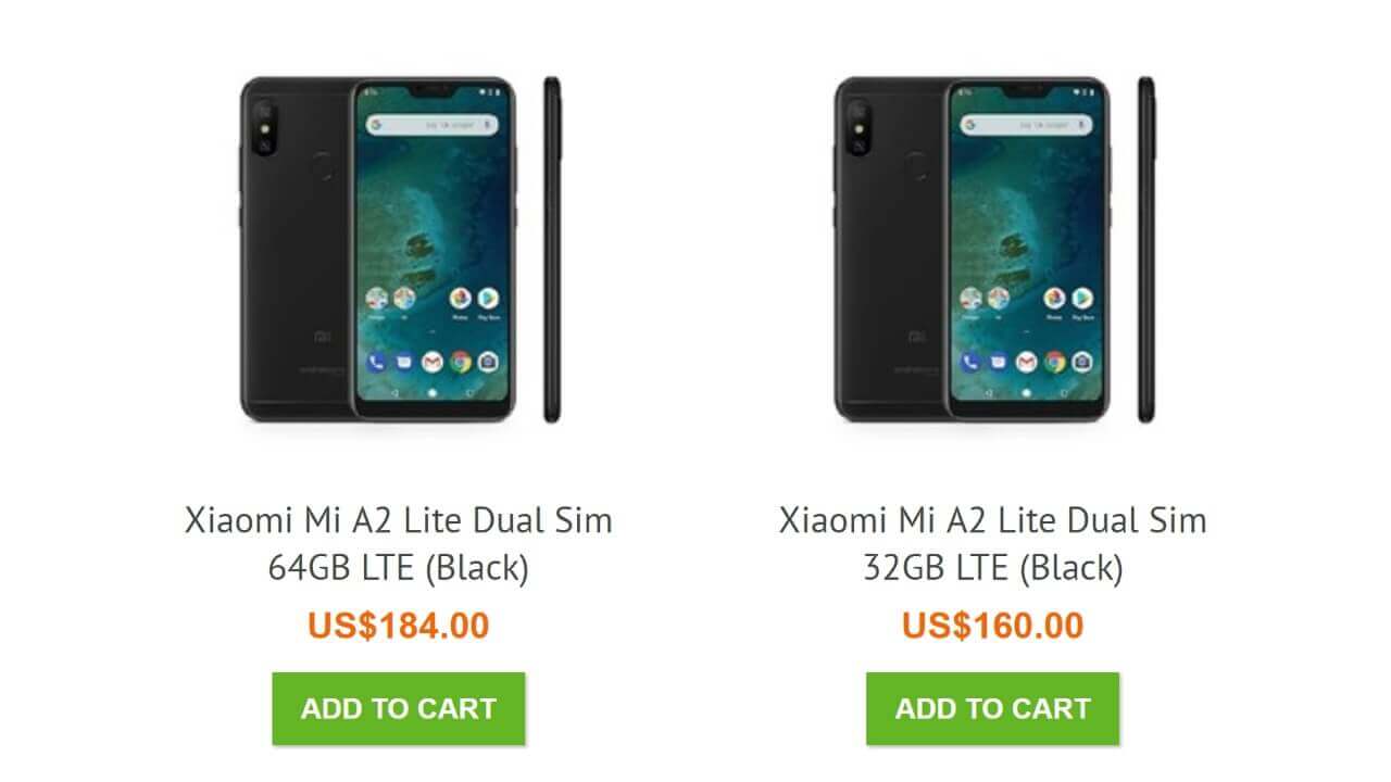 Uniqbe での「Xiaomi Mi A2 Lite」の本体価格は、32GB モデルが $160、64GB モデルが $184 となっています。同じく海外で発売された「Xiaomi Mi A2」の本体価格は $240 前後なので、「Xiaomi Mi A2 Lite」はやはり安いですね。