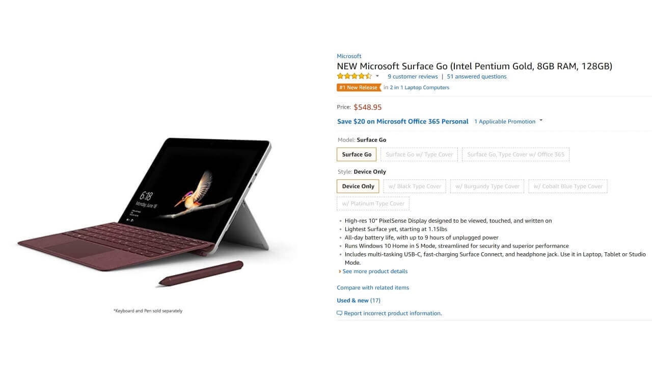 「Surface Go」は今月下旬に国内でも発売されますが、待ちきれない方は Amazon から輸入してみてはいかがでしょうか。