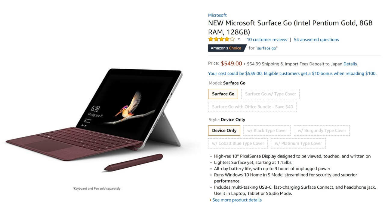 「Surface Go」米Amazonに入荷&定価で直輸入可能