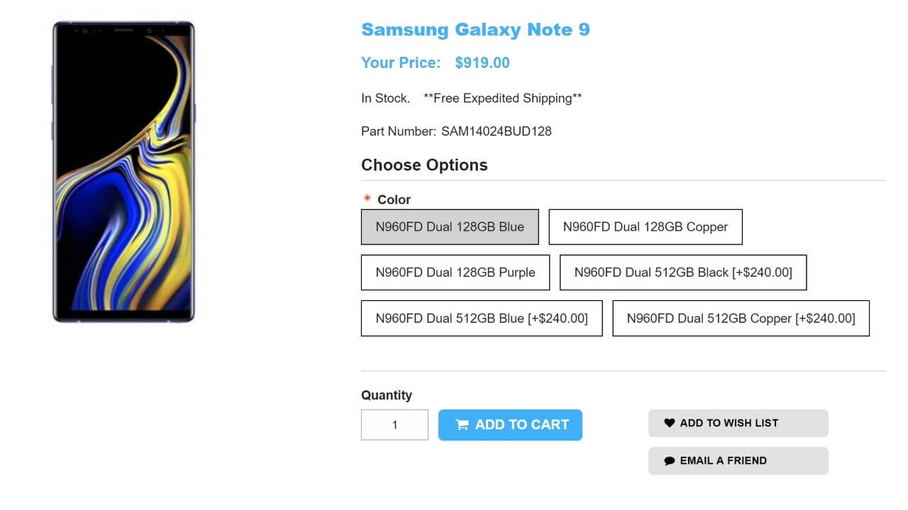 - Samsung Galaxy Note 9 Your Price: $919.00 ~