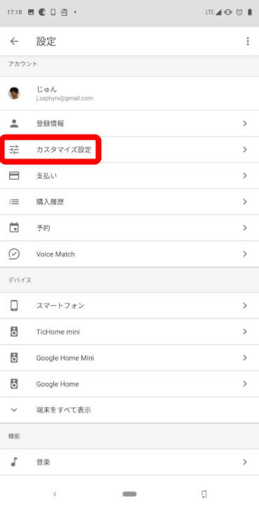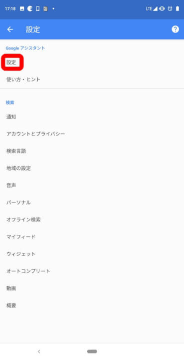 Google アシスタントの “設定”