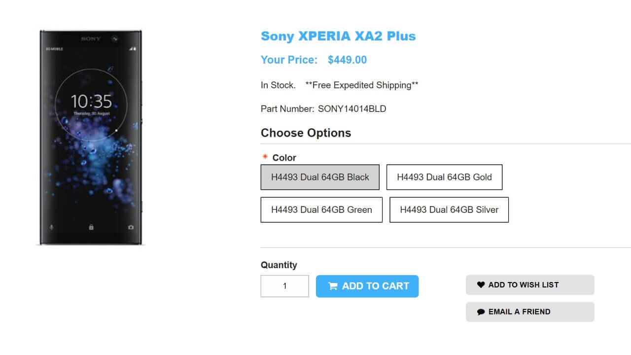 Sony XPERIA XA2 Plus Your Price: $449.00
