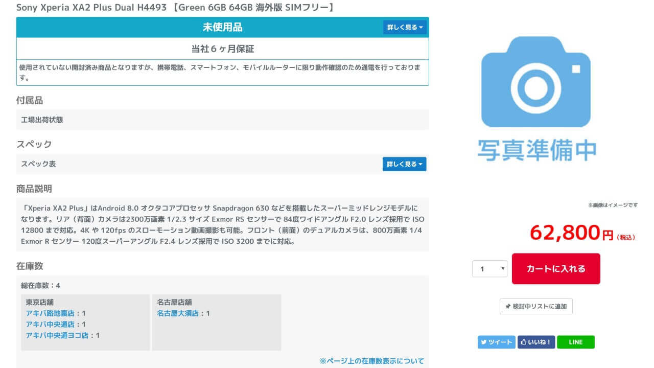 国内外スマートフォンや中古スマートフォンを国内で格安販売するイオシスに、7 月上旬に海外で発表された Sony Mobile 製 Xperia スマートフォン「Xperia XA2 Plus」が入荷した模様です。
