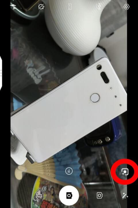 あとはカメラアプリを起動すると画面右下に「Google レンズ」アイコンが表示されるので、そこをタッチすれば「Google レンズ」利用可能です。