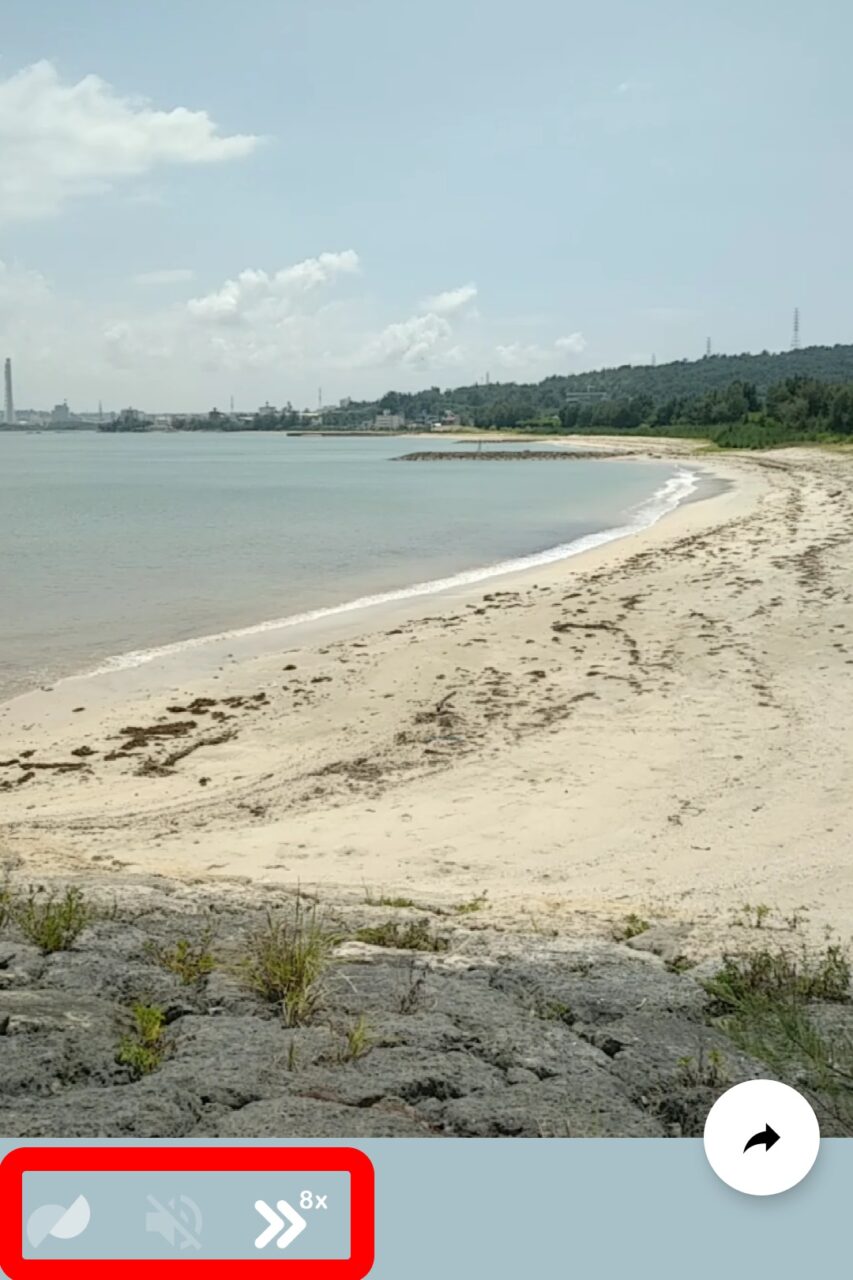 早送りは初期状態では 8 倍となっていて、タッチすることでノーマル / 2 倍 / 4 倍 / 8 倍と順に切り替えることができます。