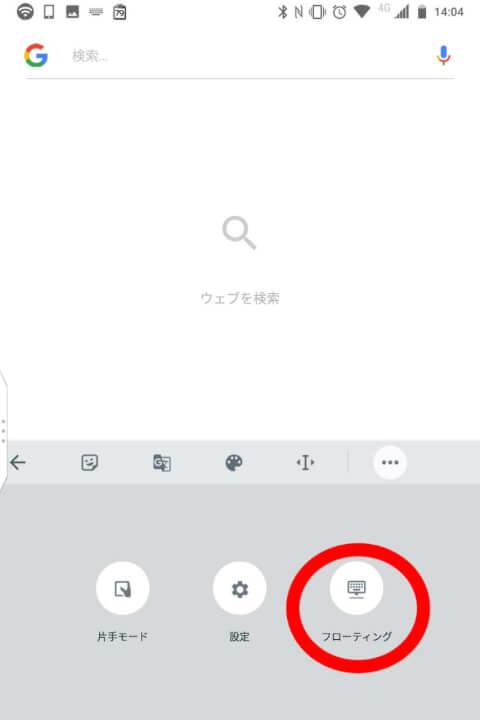 「Gboard」の “フローティング” モードを利用する方法は、キーボードを表示している状態で “G” アイコンをタッチ → “・・・(メニュー)” アイコンをタッチ → “フローティング” をタッチ、の順で行います。