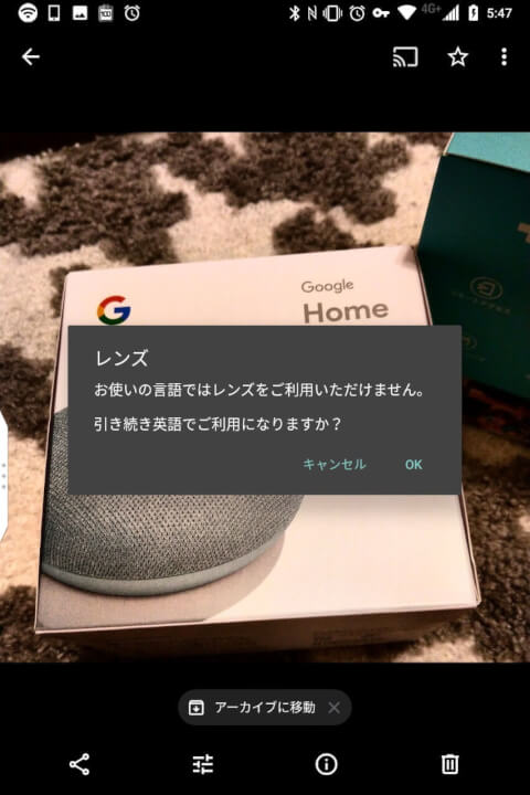 ただし「Google レンズ」は今回のアップデートでもまだ日本語利用が解禁されておらず、日本語ロケールの状態では利用することができません。