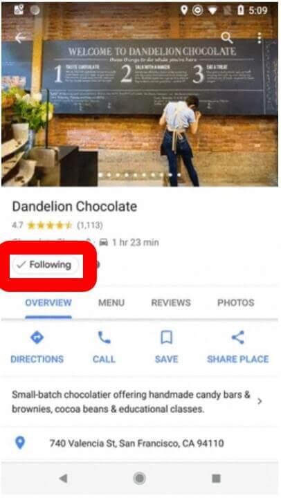 Facebook の Facebook ページに “いいね” をして、タイムラインで情報を受け取ることができるようにする機能と似ています。フォローするには対応している地域のスポット情報を「Google マップ」で表示すると “Follow” ボタンが表示されるので、そこをタッチするのみです。