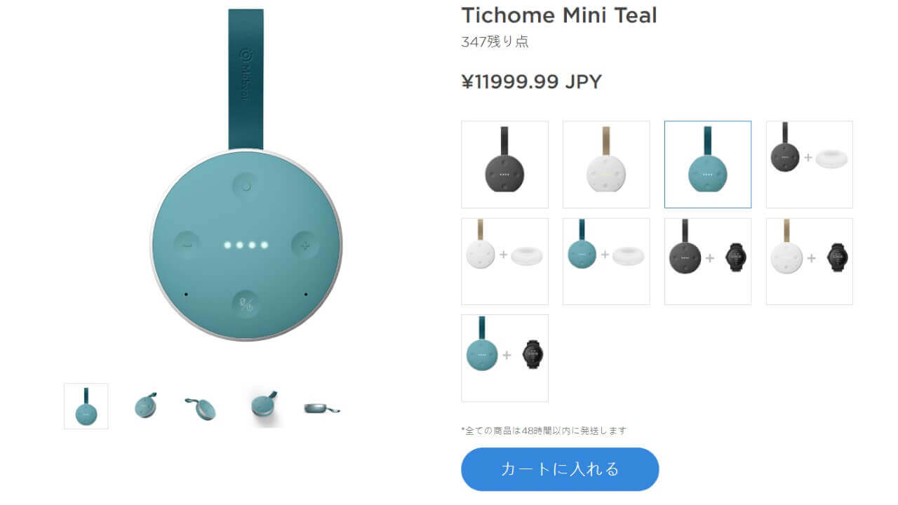 「TicHome Mini」の国内価格は 11,999.99 円(12,000 円)で」、“Black” “White” “Teal” の 3 色展開となります。