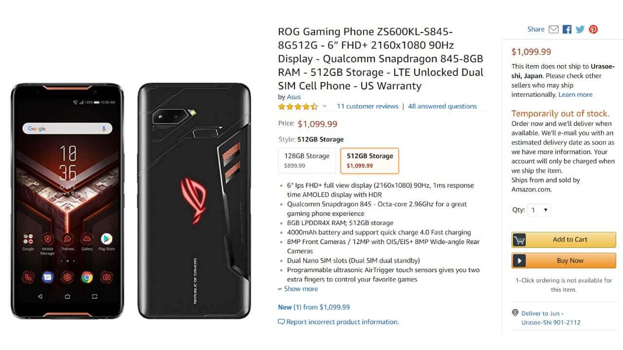 つまり本当に米国で発売されるかは、今のところ不明。ちなみに「ROG Phone」512GB モデルの Amazon における本体価格は、$1,099.99(約 124,400 円)です。