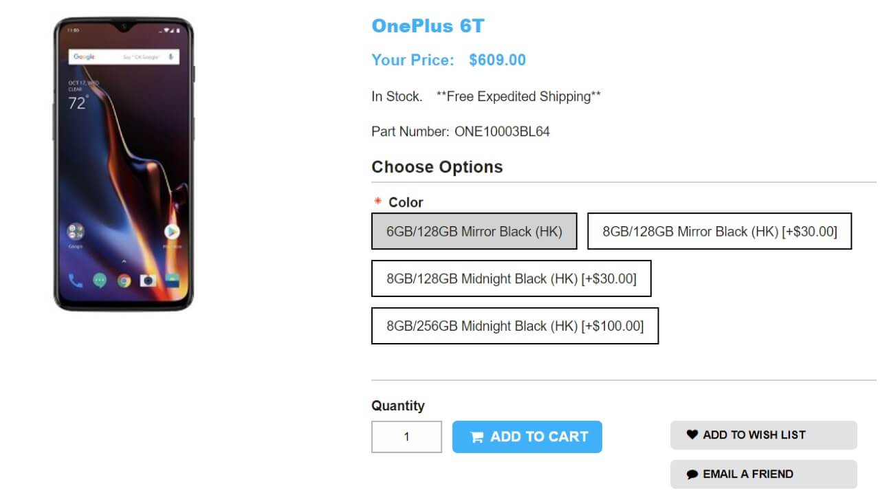 - OnePlus 6T Your Price: $609.00 ~