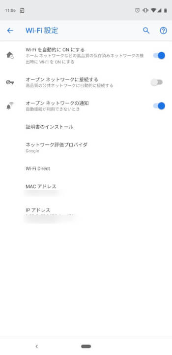 この“Wi-Fi かんたん接続” は、Android の Wi-Fi 設定内に格納されていて、Android 8.1 以前では利用することができたのですが、Android 9 Pie 以降では項目がなくなり利用できなくなりました。