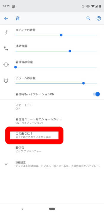 「この曲なに?」は、設定の中にある “音” カテゴリに格納されています。