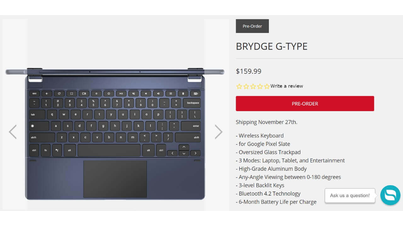 米国のアクセサリーメーカー Brydge が、2018 年 11 月 27 日に発売される Google の ChromeOS 搭載ハイスペックタブレット「Pixel Slate(C1A)」用 Bluetooth キーボード「G-Type」の予約を受け付け中です。