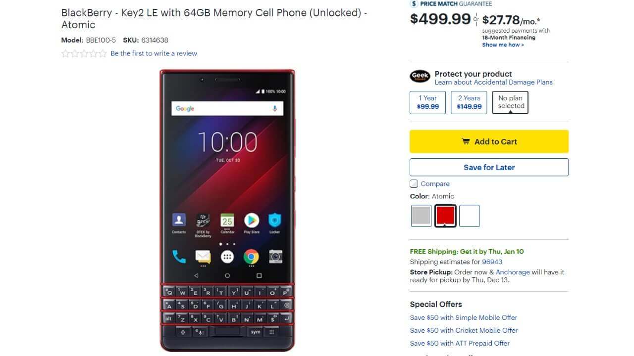 欧州の BlackBerry 公式ストアで発売された「BlackBerry KEY2 LE」のレッド系大注目カラー “Atomic” が、米国でも予約が開始されました。