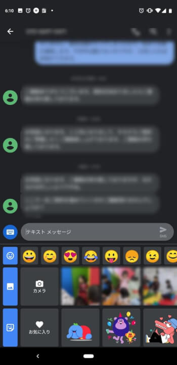 カメラとメディアへの簡易アクセスでは、メッセージのやり取り画面で “+” 部分をタッチすることで、端末に保存されている写真や画像などのメディアや絵文字をダイレクトに添付したり、カメラアイコンからカメラをダイレクトに起動することができるようになりました。