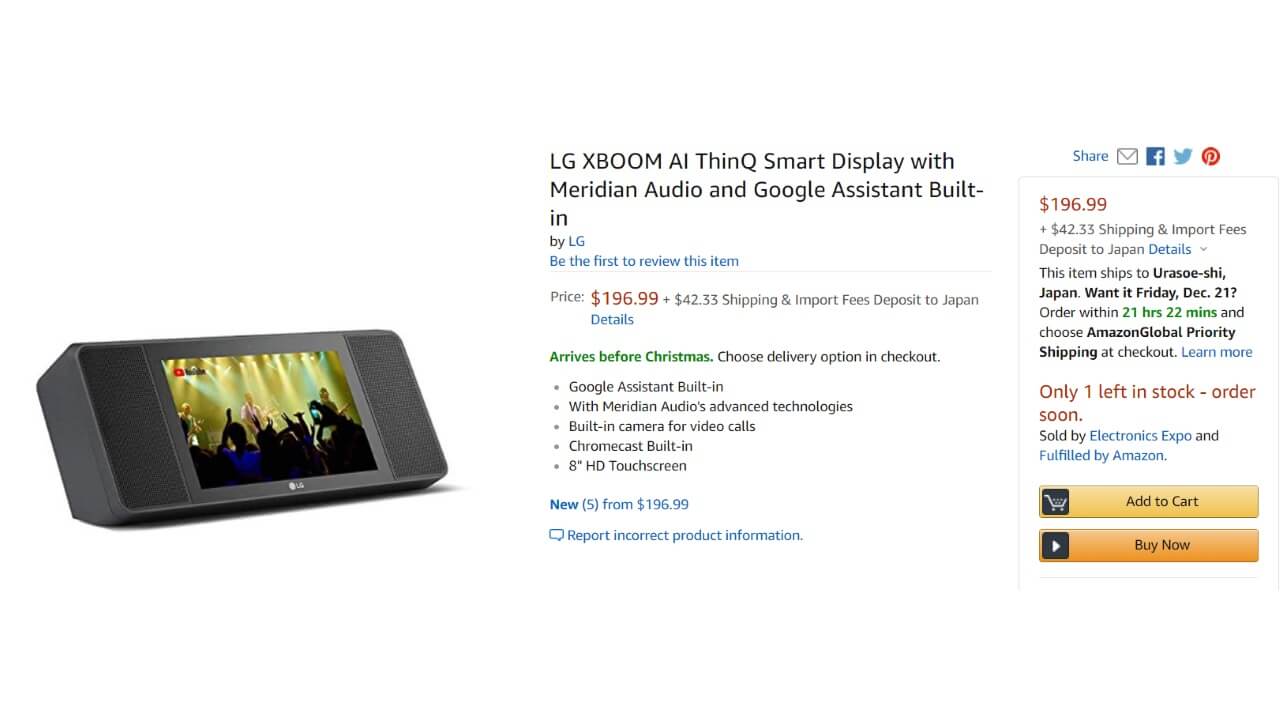 LG が 2018 年 11 月 20 日に米国で発表し、すでに一部のショップで発売もされた Google スマートディスプレイ「XBOOM AI ThinQ WK9」が、現地の Amazon.com から直輸入可能となりました。