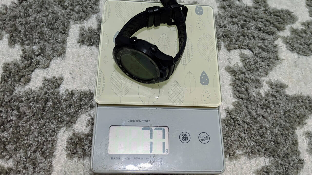 そのため軽量で扱いやすい仕様となっているのですが、ケース部分はアルミとナイロン素材、バンド部分はシリコン素材が採用され、デザインもかなりシンプルです。私が普段運用している Mobvoi の Wear OS ウォッチ「TicWach Pro」と重さを比較してみたところ、約 35g も軽量でした。