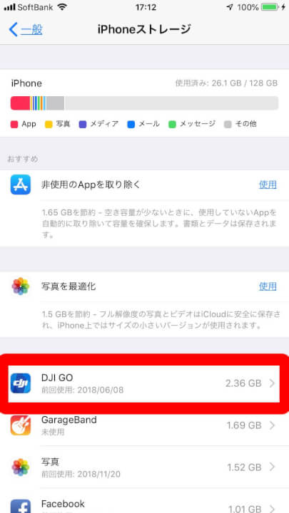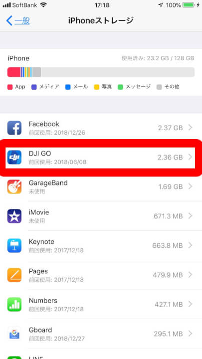 ストレージ容量の専有問題ですが、アップデートによってどの程度の効果が出るのかは公開されていません。当ブログでも一応アップデート前と後の「DJI GO」アプリのストレージ使用量を見てみましたが、特に変化はありませんでした。