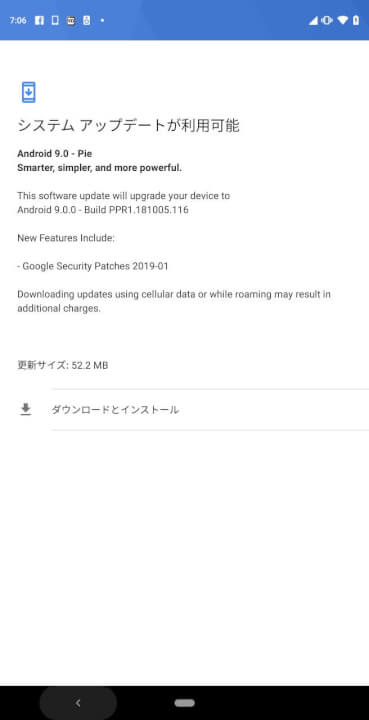 今回のソフトウェアアップデートは主に、Android セキュリティパッチの更新です。他の機能追加や変更、新機能の追加などは特に行われていない模様。OS バージョンも Android 9.0 Pie から変更ありません。