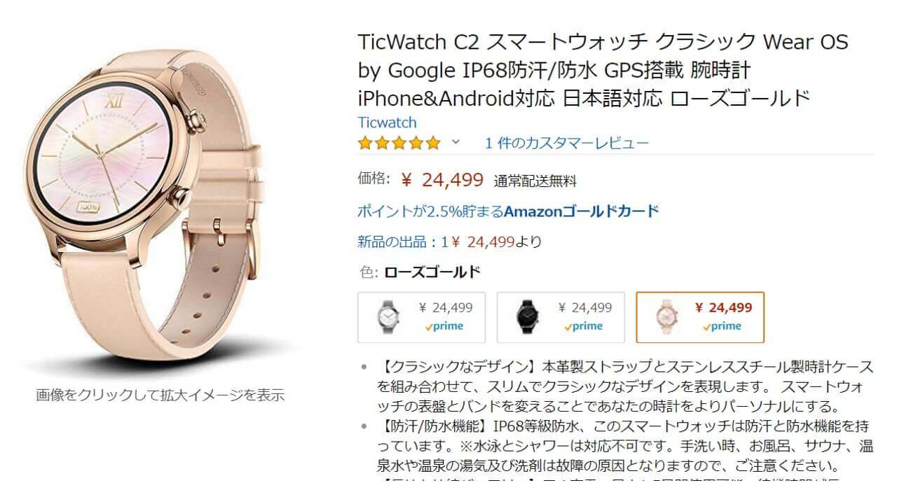 「TicWatch C2」の国内価格は 24,499 円で、Amazon と Mobvoi 公式サイトで販売されています。