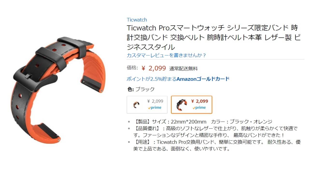 「Ticwatch Pro」用限定交換バンドは、Amazon で 2,000 円程度で販売されています。