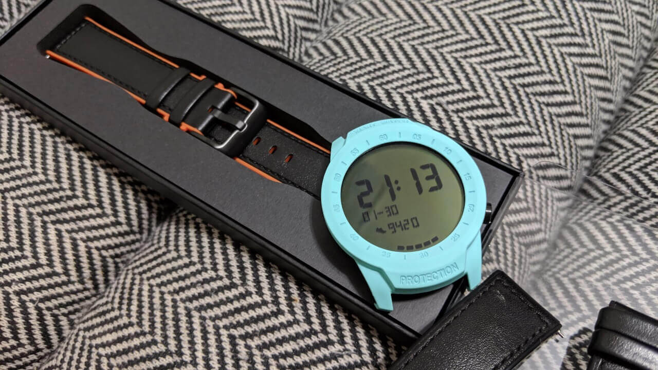 ただ、「TicWatch Pro」用バンパーケース「SIKAI Protective Anti-Scratch Bumper Cover」“ブルー” との相性は激悪。流石に色合いがめちゃくちゃです。「SIKAI Protective Anti-Scratch Bumper Cover」を装着しつつ限定交換バンドを用いるのであれば、「SIKAI Protective Anti-Scratch Bumper Cover」のカラーを考えた方が良さそうです。