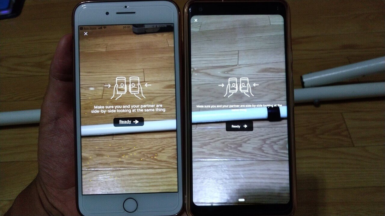 「Just a Line」では、「Just a Line」を使用することができる「ARcore」をサポートした機種 2 台で、同じ空間描画を行うことができる同時描画機能を利用することができます。