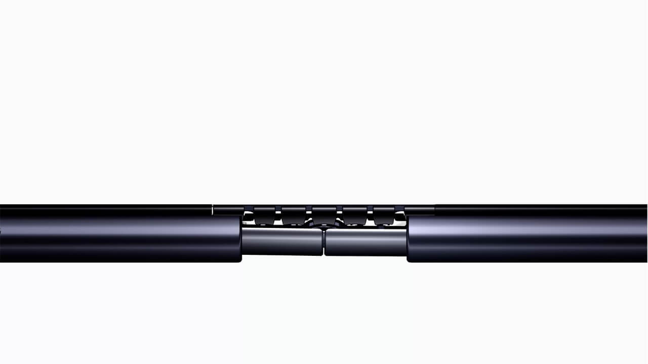 そして驚くべき点は、持ち手となる右サイドのバーユニット部分以外のベゼルが極端に少ない点。究極の狭額縁ベゼルレスデザインを採用しています。また薄さも特徴で、ヒンジ部分も Falcon Wing デザインによって折りたたんだ状態でも 11mm という薄型仕様を実現しています。