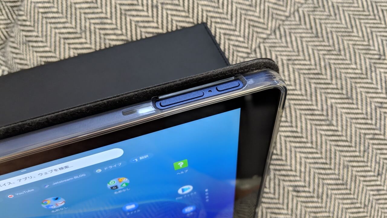 少しだけ残念だったのは、物理ボタン部分まで開口されている点です。できればここはカバーして欲しかったのですが、まぁ仕様上仕方ないですね。