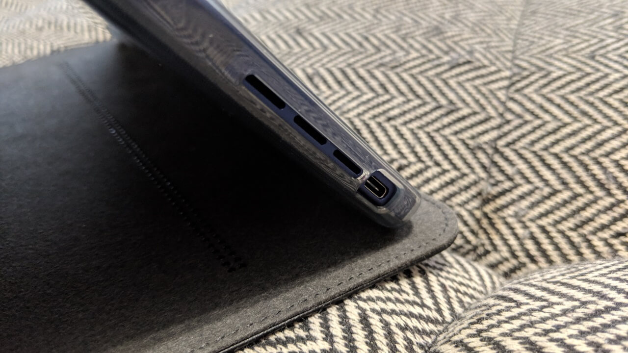 各インターフェース 部分もちゃんと開口されています。もちろんスタイラスペン収納部も開口。ケースを装着したままスタイラスペンを取り出し可能です。