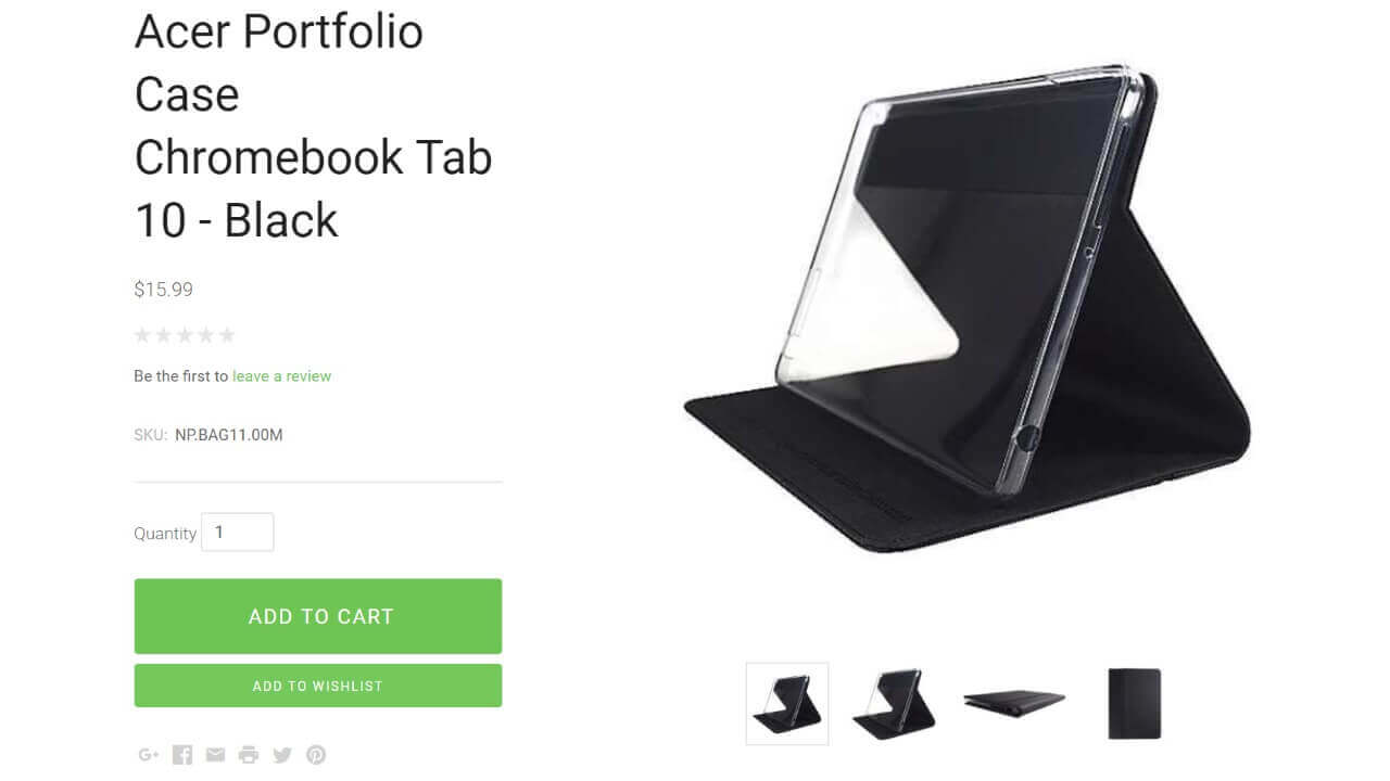 私が購入した「Chromebook Tab 10」専用ケースは、Acer 純正の「Acer Portfolio Case for Chromebook Tab 10」です。「Chromebook Tab 10」はフランス Amazon.fr から購入しつつ、「Acer Portfolio Case for Chromebook Tab 10」は米国 Amazon.com から輸入しました。
