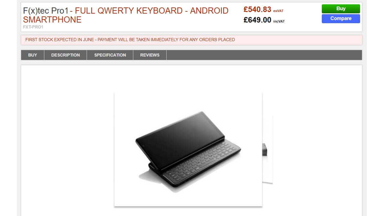 Clove、スライドQWERTYキーボード搭載ピュアAndroid「F(x)tec Pro1」予約開始