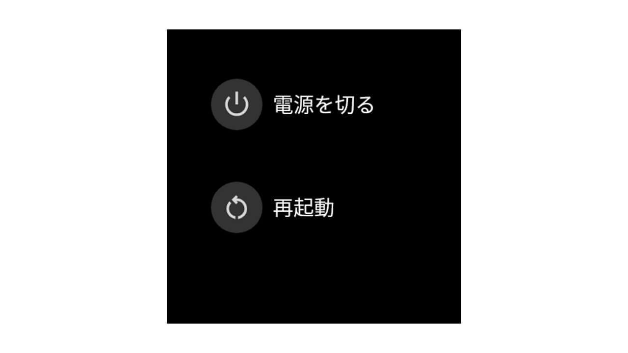 要は、昨今の Android のように電源 OFF メニューが表示されるというもの。で、Wear OS システムバージョン「H」の「2 ステップ電源 OFF オプション」はというと、下の画像となりました。いたってシンプルです。
