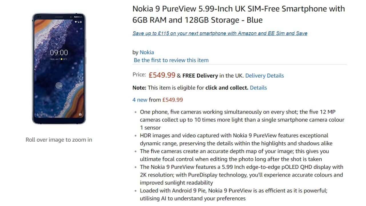 英国現地日時 2019 年 3 月 20 日より公式発売となっていた、世界初 5 リアカメラ搭載ハイスペックスマートフォン「Nokia 9 PureView」が、予定通り英国で発売されました。