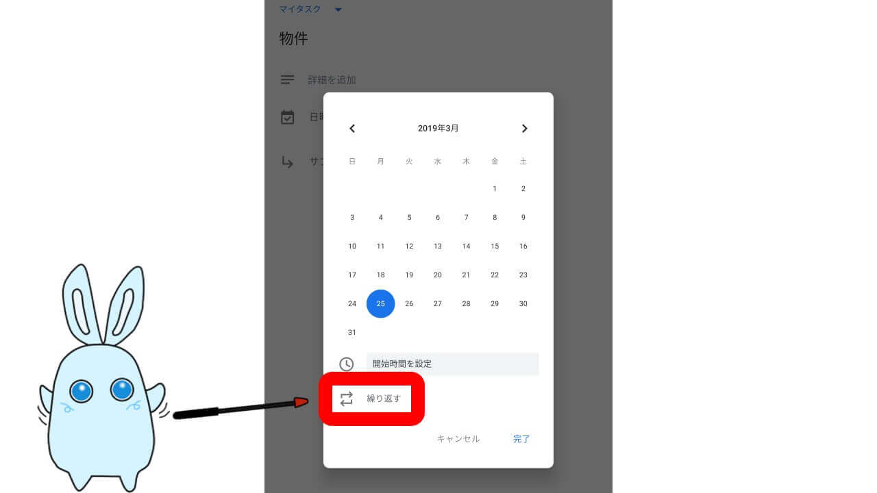 タスクの繰り返し設定は、曜日や繰り返す周期を設定することで、一定の間隔でタスクの設定が繰り返されて通知を受け取ることができる機能です。