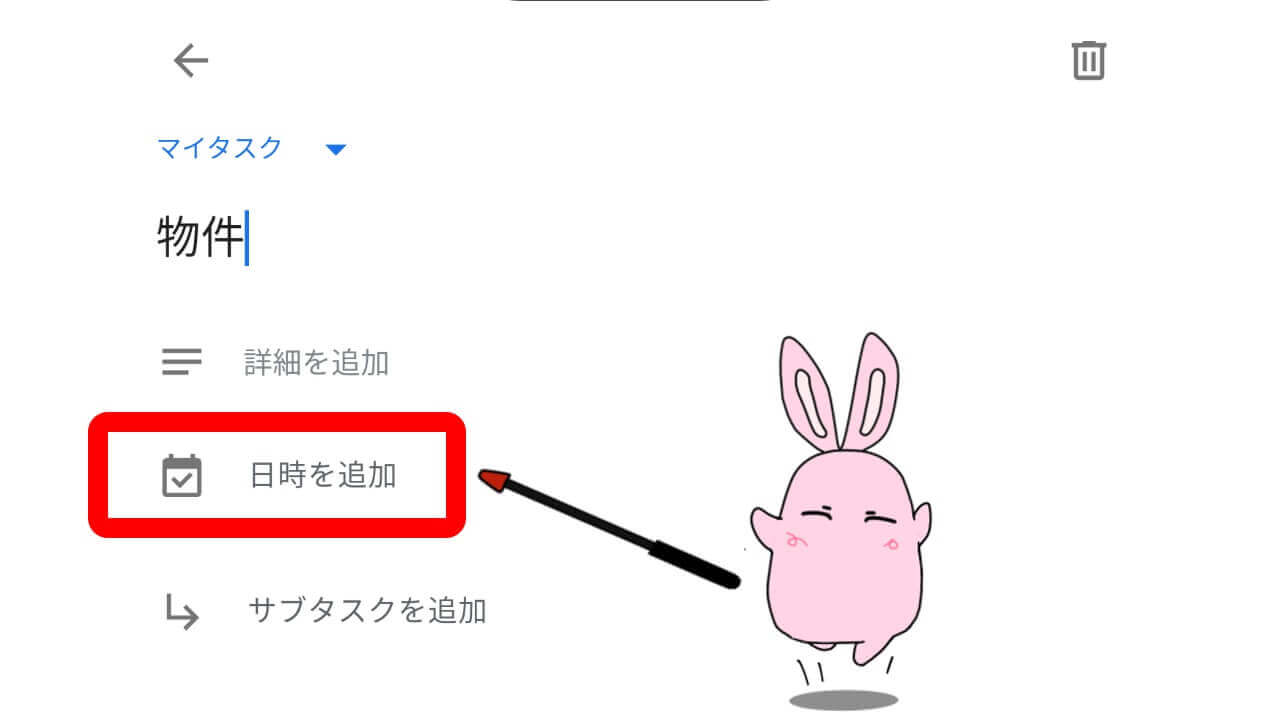 実際の設定は、各タスクの “日時を追加” から日付を選択するのみです。