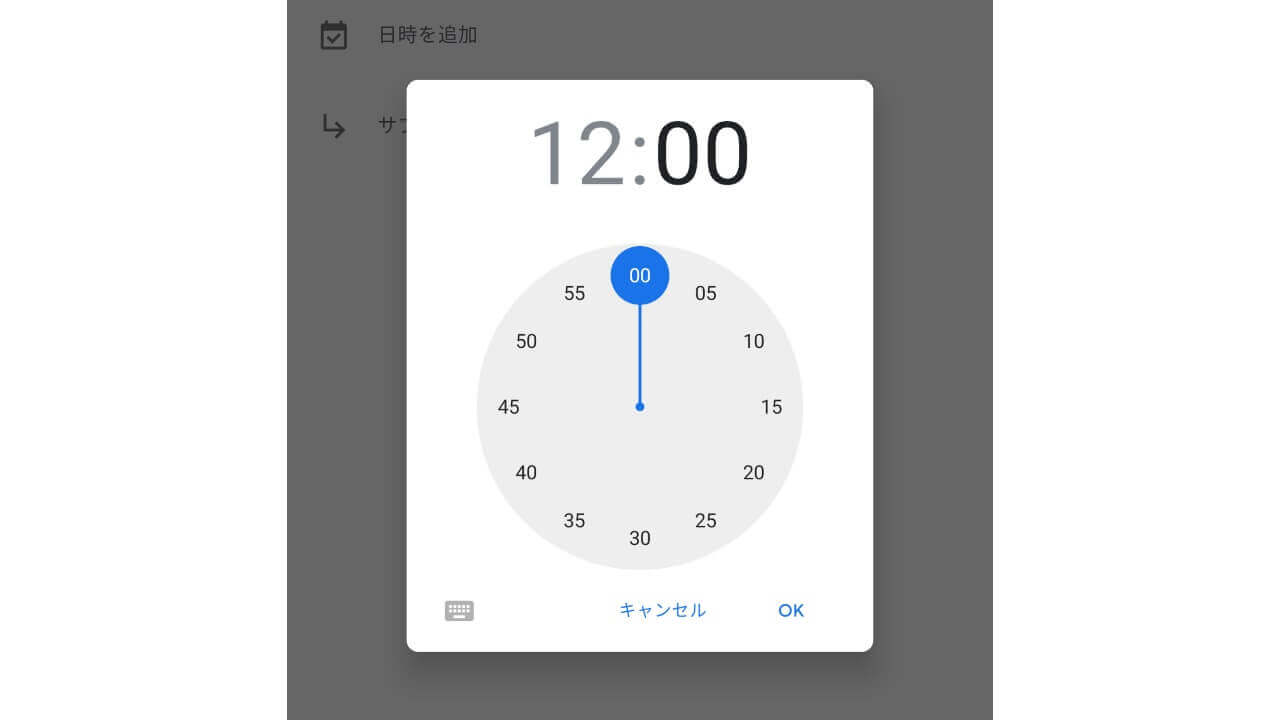 開始日時設定の設定はタスクの期限設定と手順がほぼ一緒なのですが、更に時間を設定することにより、その日時になったら通知を受け取れるようになります。