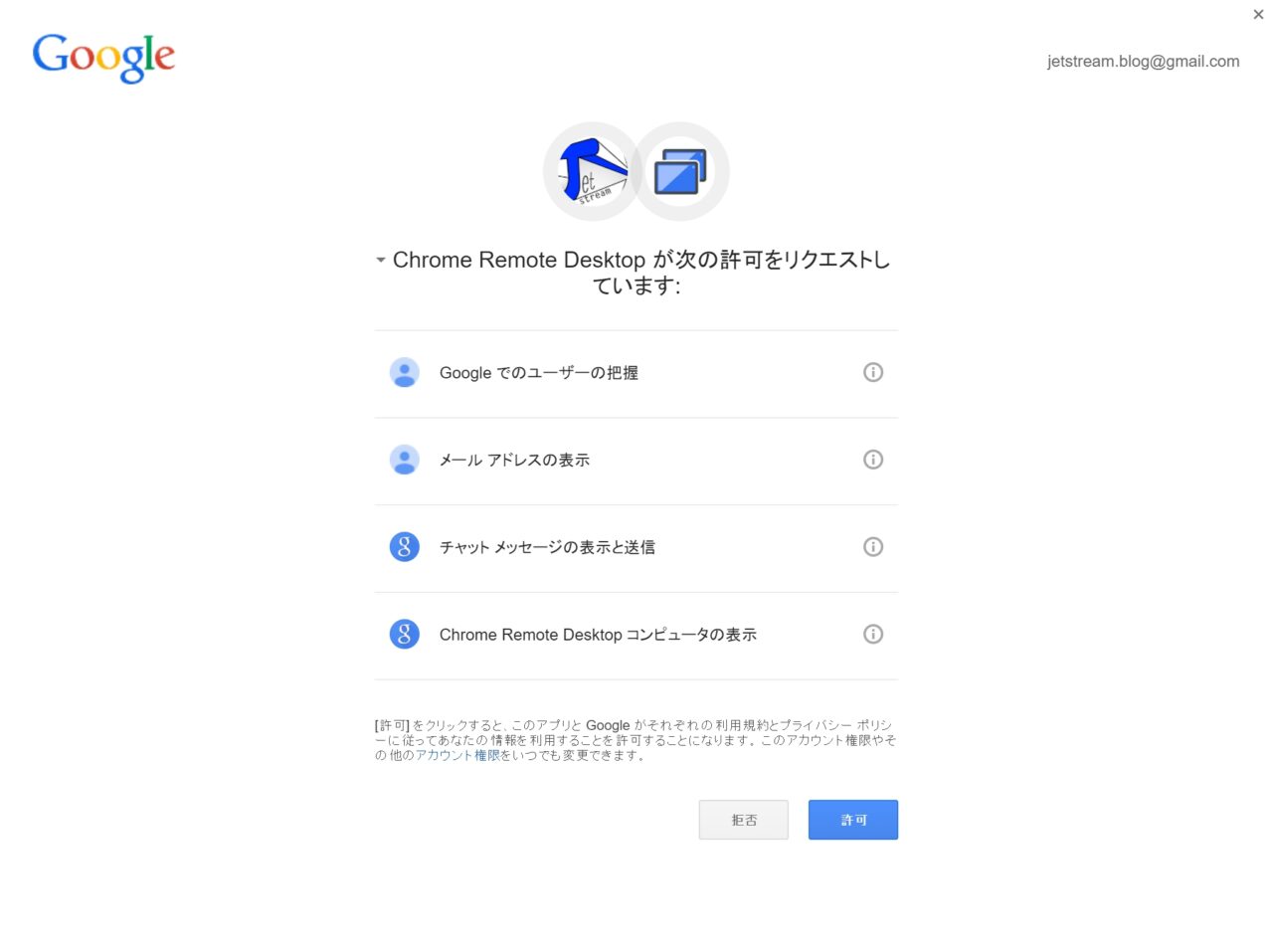 初回は Google アカウントでの承認を求められるので、許可を行います。