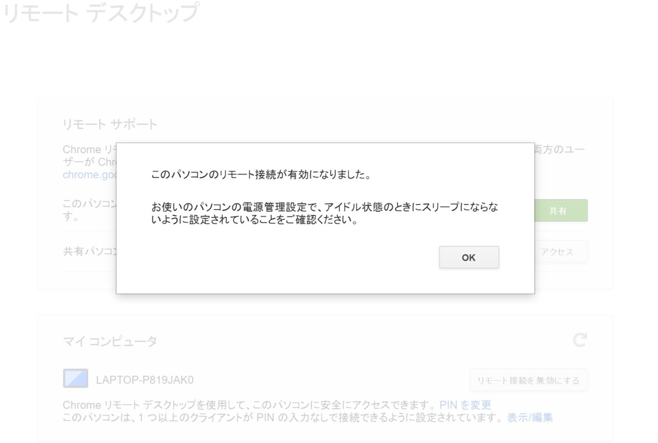 以上、「Chrome リモート デスクトップ」の各設定のご紹介でした