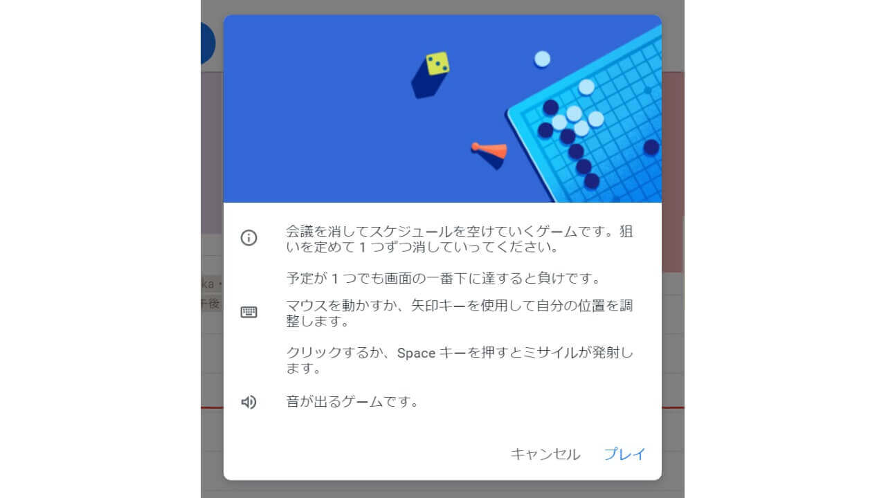 ただし「Google カレンダー」のシューティングゲームは、WEB 版「Google カレンダー」のみで提供されている模様です。スマートフォン版アプリでは、多分提供されていません。