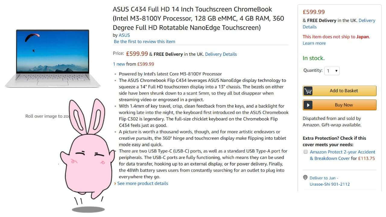 当初入荷未定で予約が行われていた、ASUS の新型 Chromebook「Chromebook Flip C434」が、英国の Amazon.co.uk に突如入荷しました。