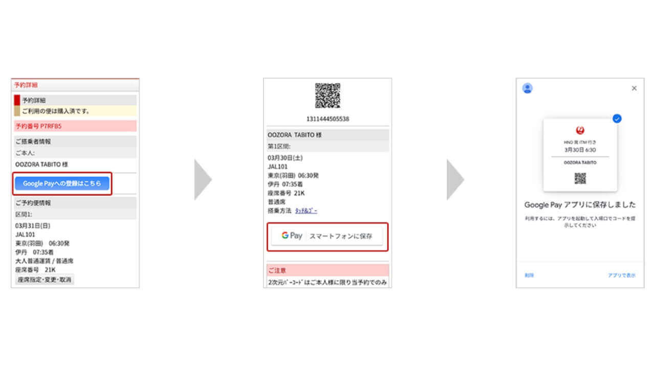 - 搭乗券を「Google Pay」に取り込む手順