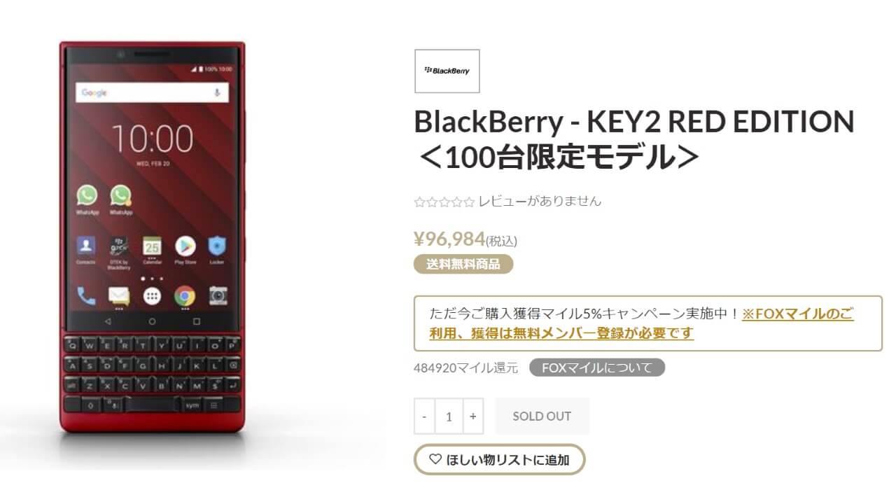 BlackBerry – KEY2 RED EDITION<100台限定モデル>
