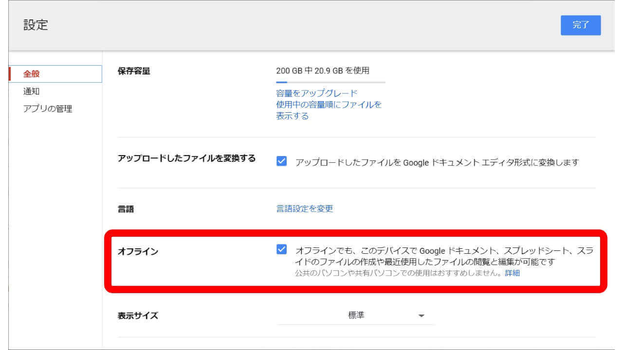 WEB 版「Google スプレッドシート」「Google ドキュメント」「Google スライド」のオフラインモードは、元々設定から機能を ON にしておかないと利用することはできません。