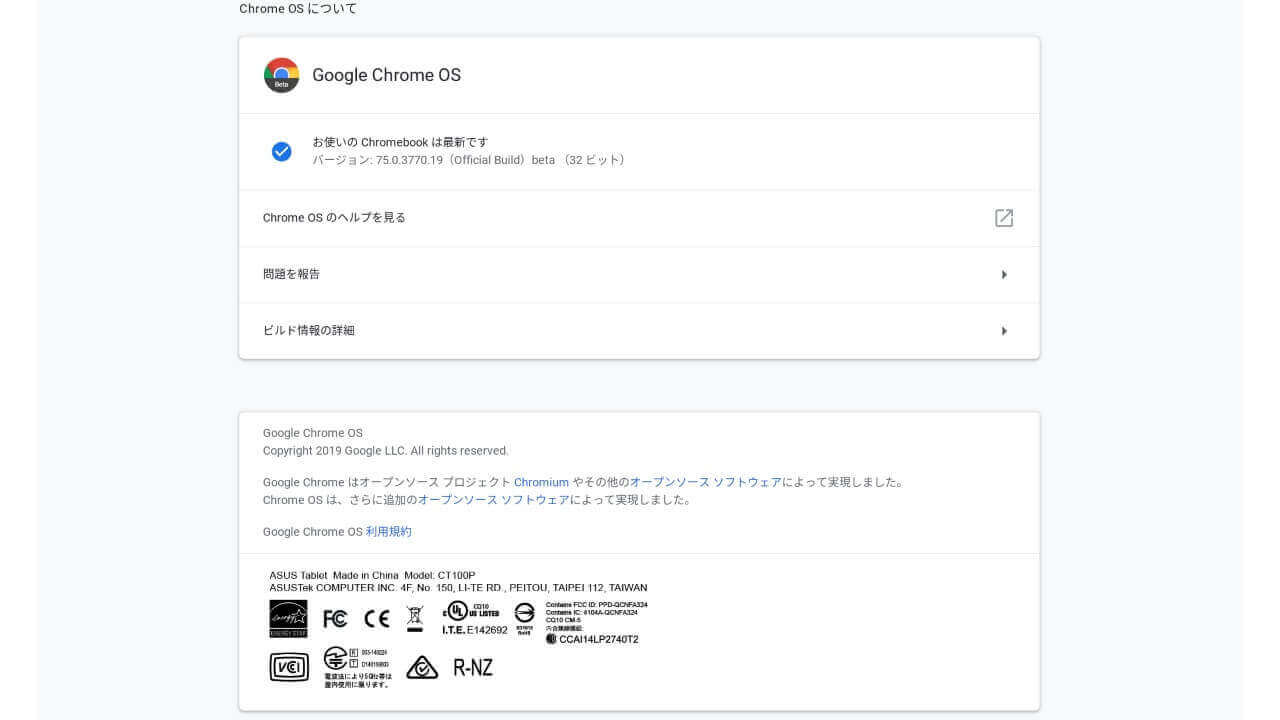 こちら海外モデルの「Chromebook Tablet CT100」でもバッチリ技適マークが確認できましたので、念のためご報告させていただきます。技適マークの有無で輸入を躊躇していた方、多いですよね。でもご安心ください。